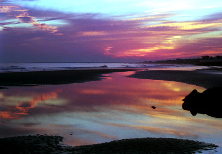 The sun sets over the water one late December afternoon at Folly Beach, SC.
