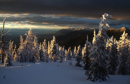 The sun sets near Mt. Marston lookout (7,343) feet in the Kootenai National Forest. Fall 1998