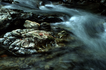A Vermilion creek waterfall spills across a rock during the fall of 1998.